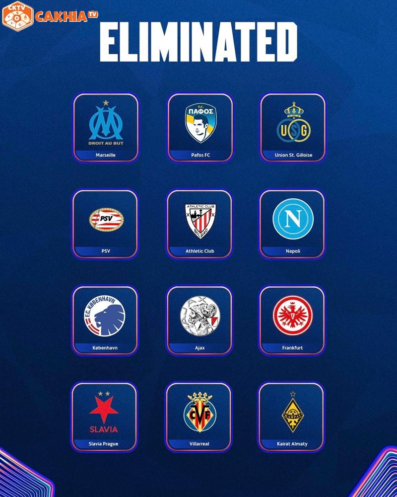 Tuy nhiên, người hâm mộ cũng khá bất ngờ khi danh sách các CLB dừng bước cũng không thiếu những đội bóng danh tiếng. Trong đó, đáng kể nhất phải là Napoli. Đoàn quân của HLV Conte bỗng nhiên thi đấu sa sút tại mùa giải năm nay và bị đánh bay khỏi Top 24 BXH. Cùng ra về với đại diện Serie A còn có: Ajax, Villarreal, Marseille, Frankfurt, PSV.